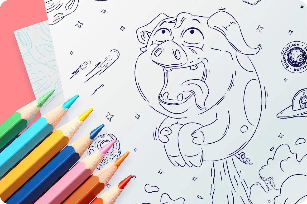Get an instant 2-in-1 PDF: color the adventure, or trace the faint blue lines to practice your line art like an illustrator!
